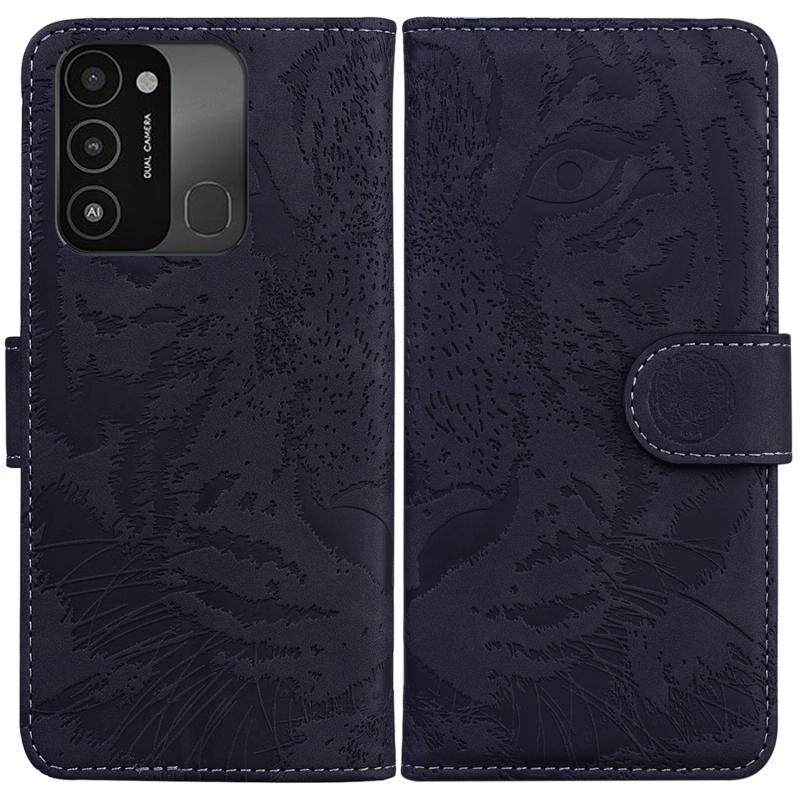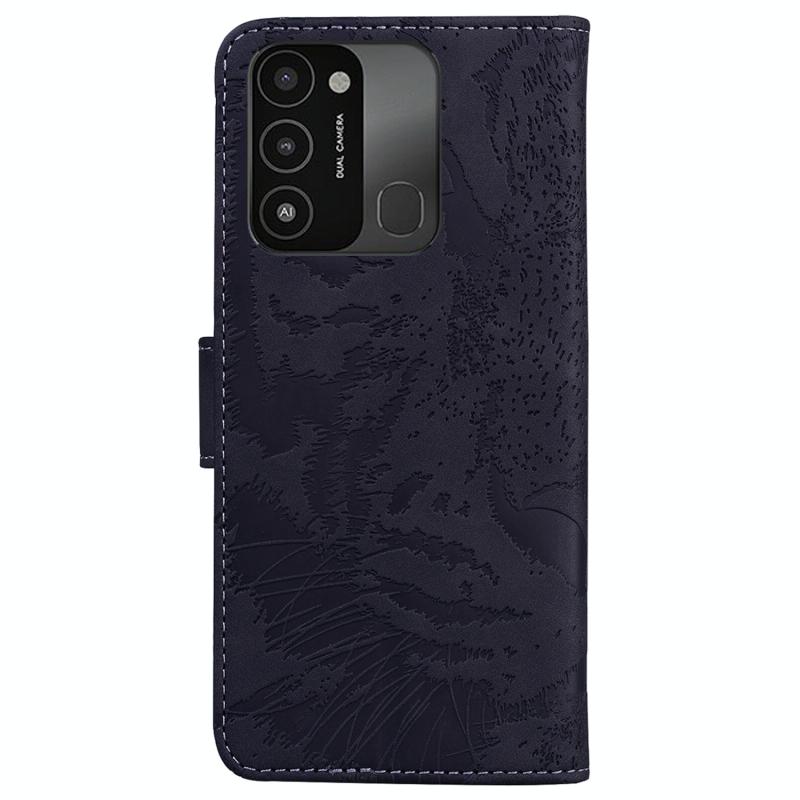 Θήκη τηλεφώνου δερμάτινη, οριζόντιας αναδίπλωσης, με ανάγλυφο σχέδιο τίγρης για Tecno Spark Go 2022 / Spark 8C (Ροζ)