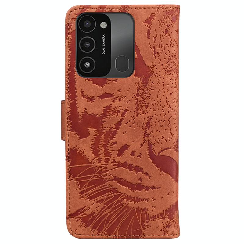 Θήκη τηλεφώνου δερμάτινη, οριζόντιας αναδίπλωσης, με ανάγλυφο σχέδιο τίγρης για Tecno Spark Go 2022 / Spark 8C (Ροζ)