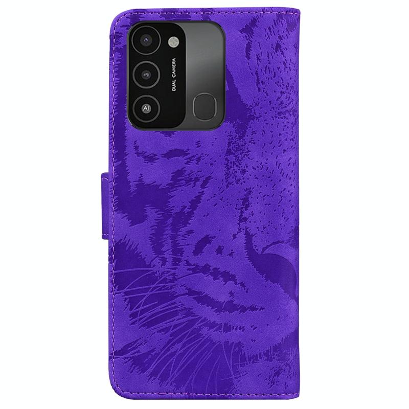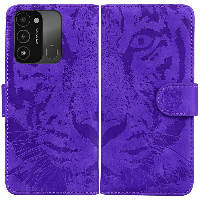 Θήκη τηλεφώνου δερμάτινη, οριζόντιας αναδίπλωσης, με ανάγλυφο σχέδιο τίγρης για Tecno Spark Go 2022 / Spark 8C (Ροζ)