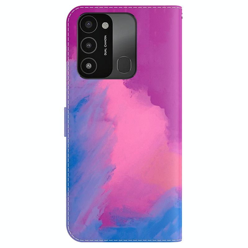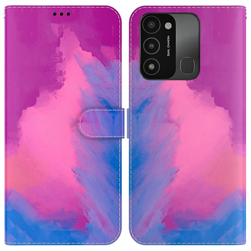 Θήκη τηλεφώνου δερμάτινη, οριζόντια αναδιπλούμενη, με σχέδιο ακουαρέλας για Tecno Spark Go 2022 / Spark 8C (Μωβ-κόκκινο)