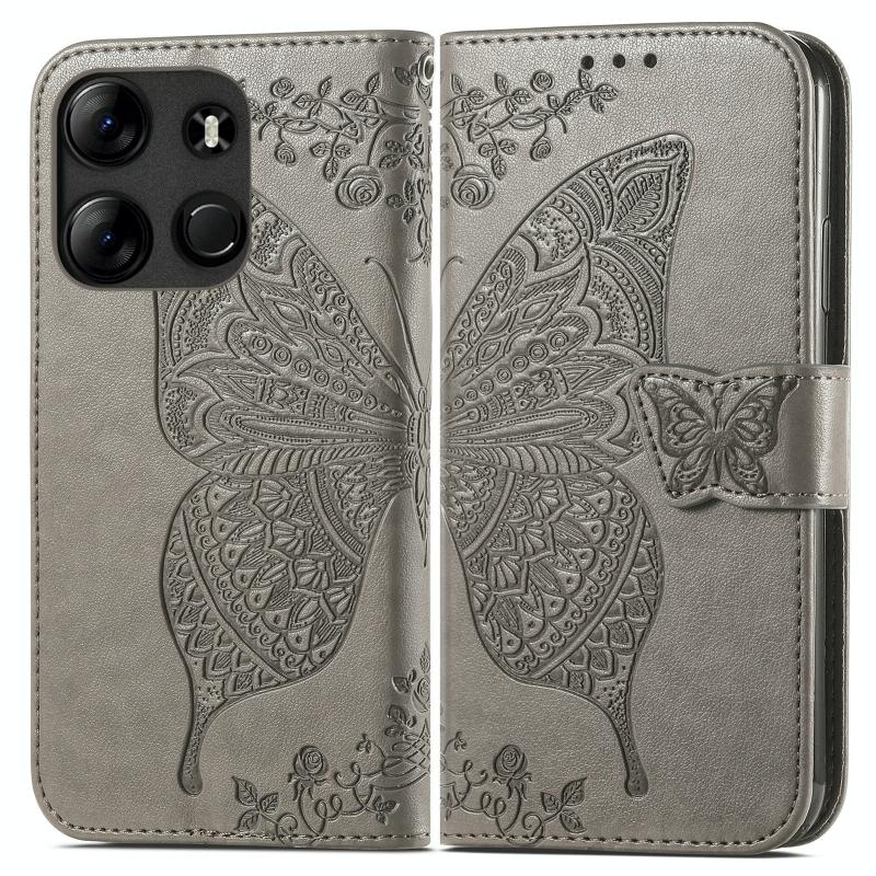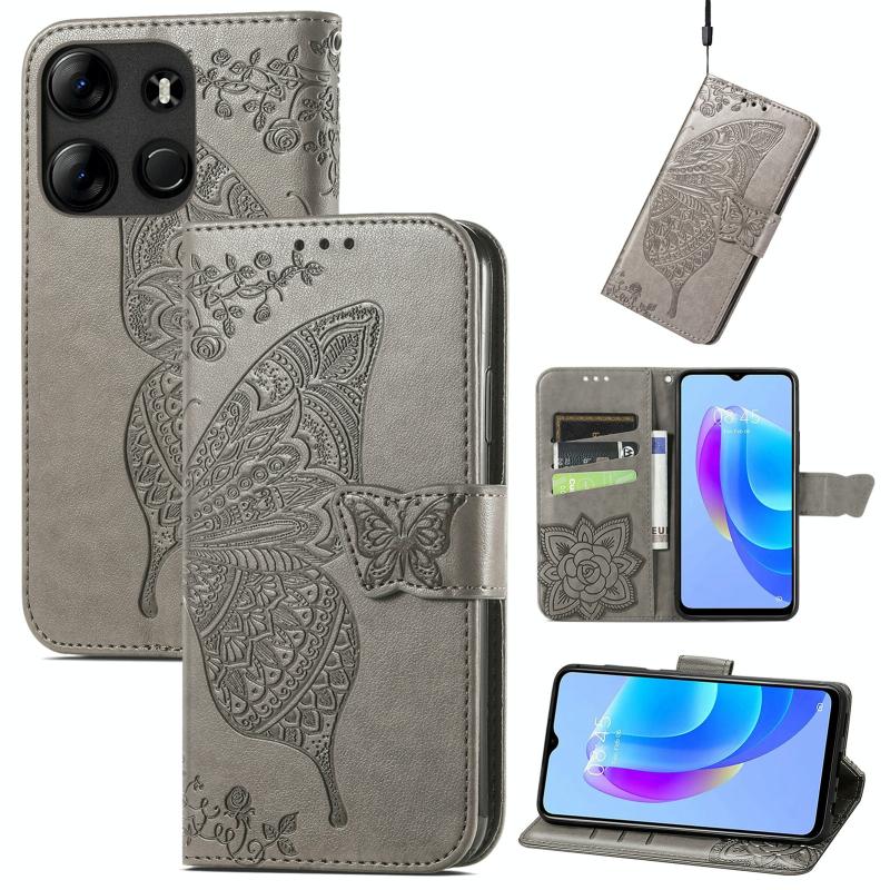 For Tecno Spark GO 2023 Butterfly Love Flower Embossed Leather Phone Case(Gray)