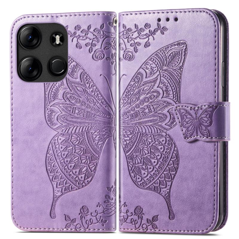 For Tecno Spark GO 2023 Butterfly Love Flower Embossed Leather Phone Case(Light Purple)