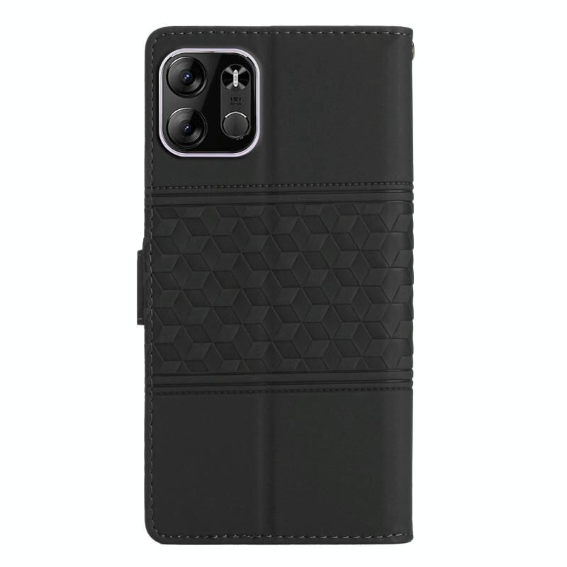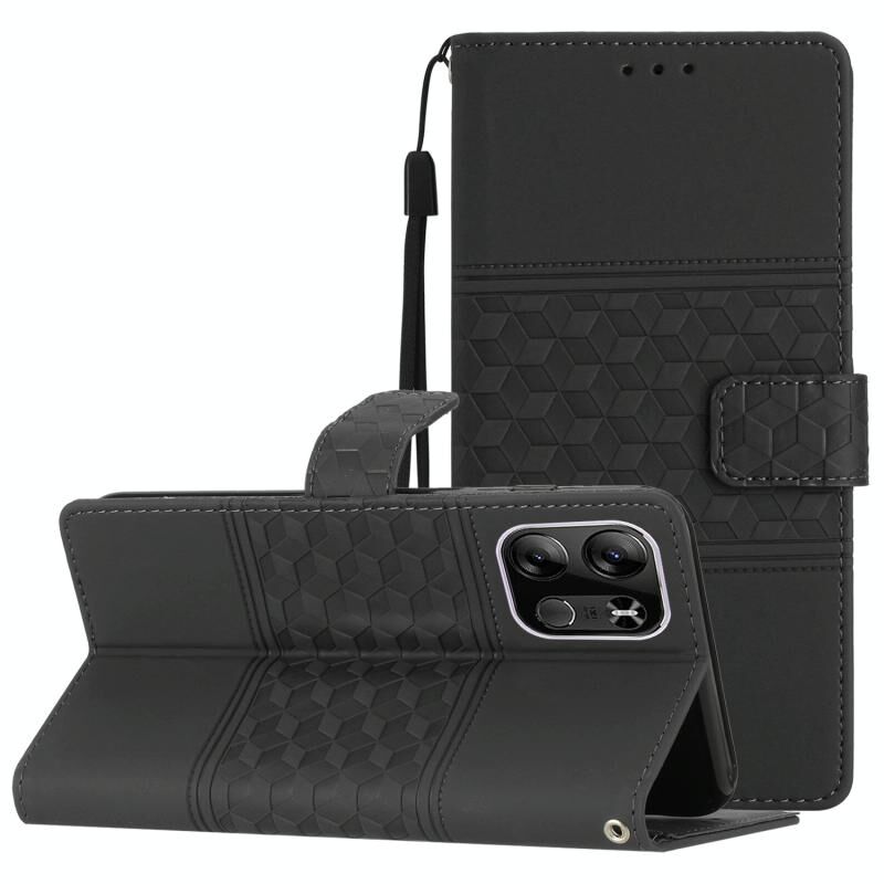 Για Tecno Spark Go 2023 Diamond ανάγλυφο δέρμα αίσθηση δέρμα τηλέφωνο υπόθεση με κορδόνι (μαύρο)