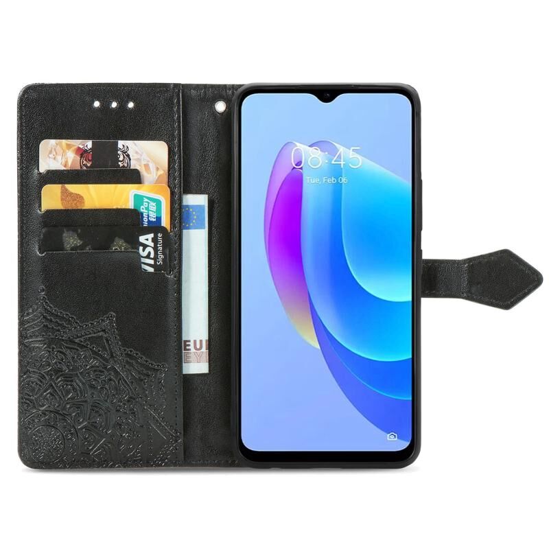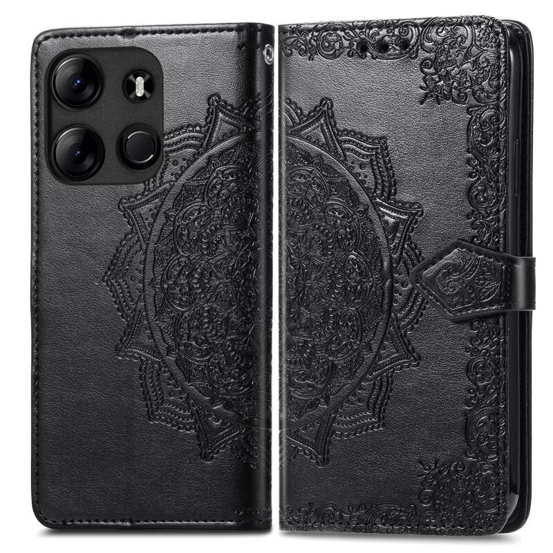 Για Tecno Spark GO 2023 Mandala λουλούδι ανάγλυφη δερμάτινη θήκη τηλεφώνου (μαύρο)