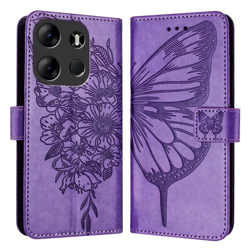 Θήκη τηλεφώνου από δέρμα με ανάγλυφο σχέδιο πεταλούδας για Tecno Spark Go 2023/Pop 7/Pop 7 Pro (Μαύρο)