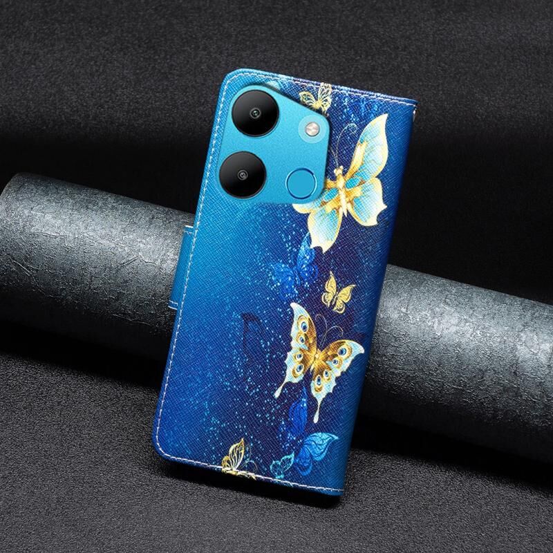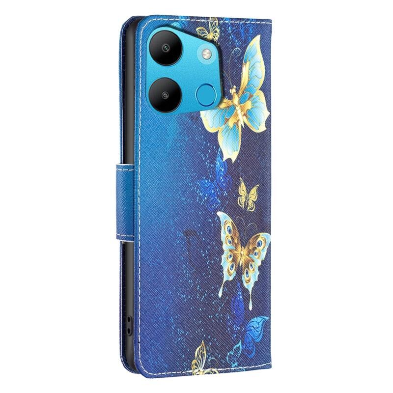 Θήκη τηλεφώνου από δέρμα με έγχρωμο σχέδιο για Tecno Spark Go 2023/Pop 7 Pro (Χρυσή Πεταλούδα)