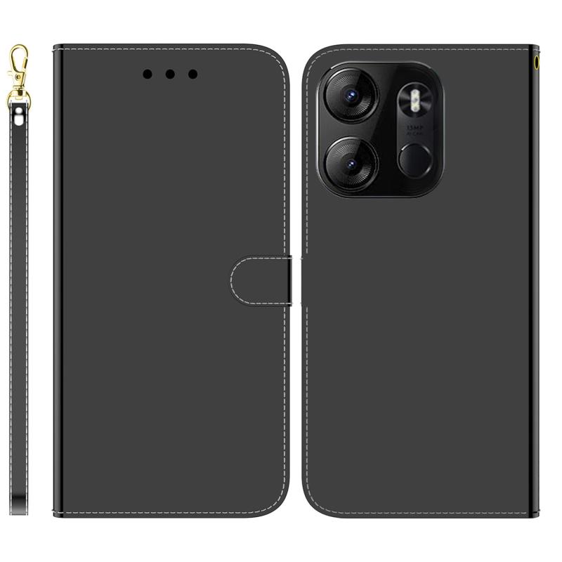 Θήκη τηλεφώνου από δέρμα με οριζόντιο άνοιγμα και απομίμηση καθρέφτη για Tecno Spark Go 2023 / Pop 7 Pro (Ασημί)