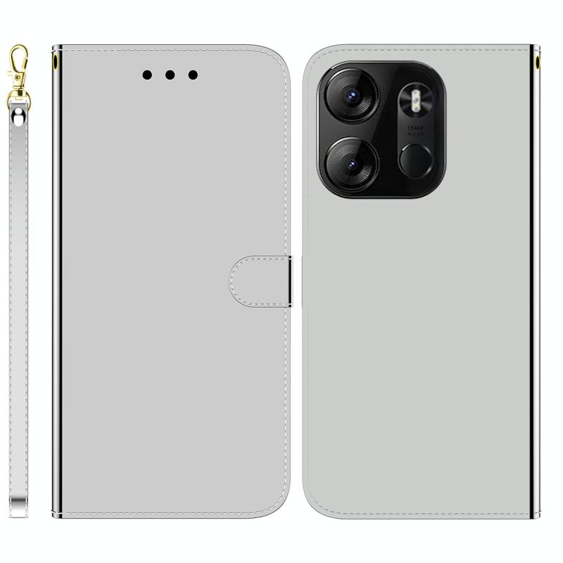 Θήκη τηλεφώνου από δέρμα με οριζόντιο άνοιγμα και απομίμηση καθρέφτη για Tecno Spark Go 2023 / Pop 7 Pro (Ασημί)