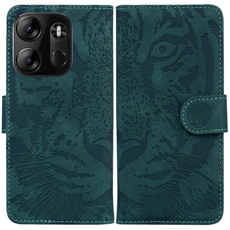 Θήκη τηλεφώνου από δέρμα με ανάγλυφο μοτίβο τίγρης για Tecno Spark Go 2023 / Pop 7 Pro (Καφέ)