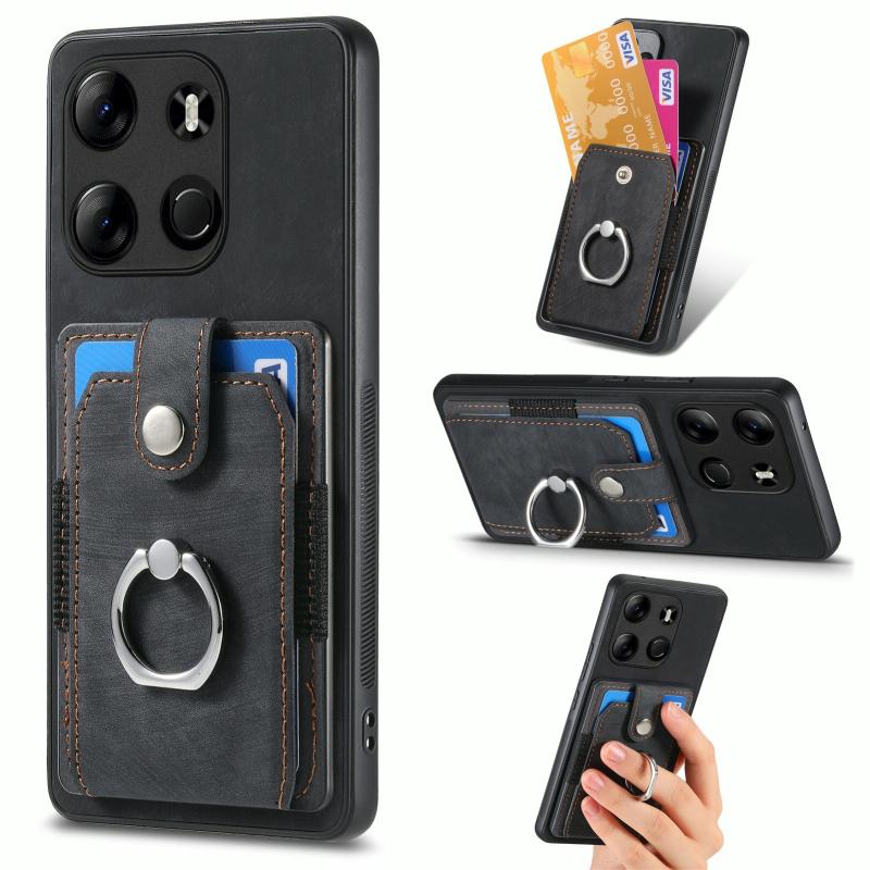 For Tecno Spark GO 2023 Retro Skin-feel Ring Multi-card Wallet Phone Case(Black)