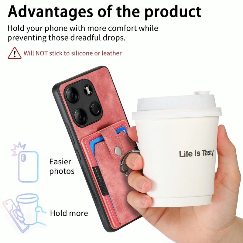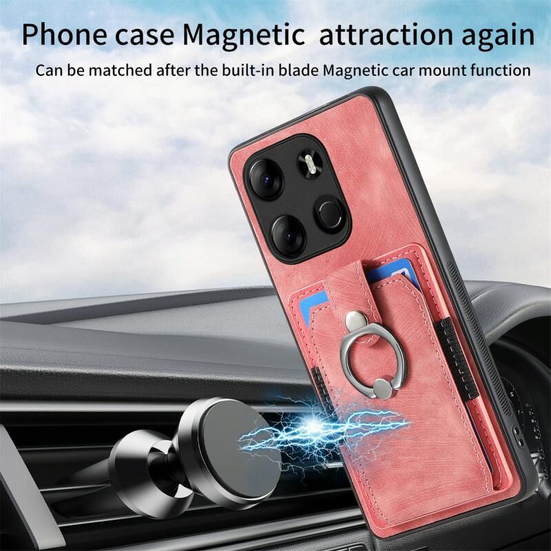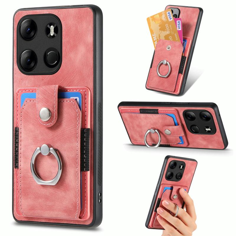 For Tecno Spark GO 2023 Retro Skin-feel Ring Multi-card Wallet Phone Case(Pink)