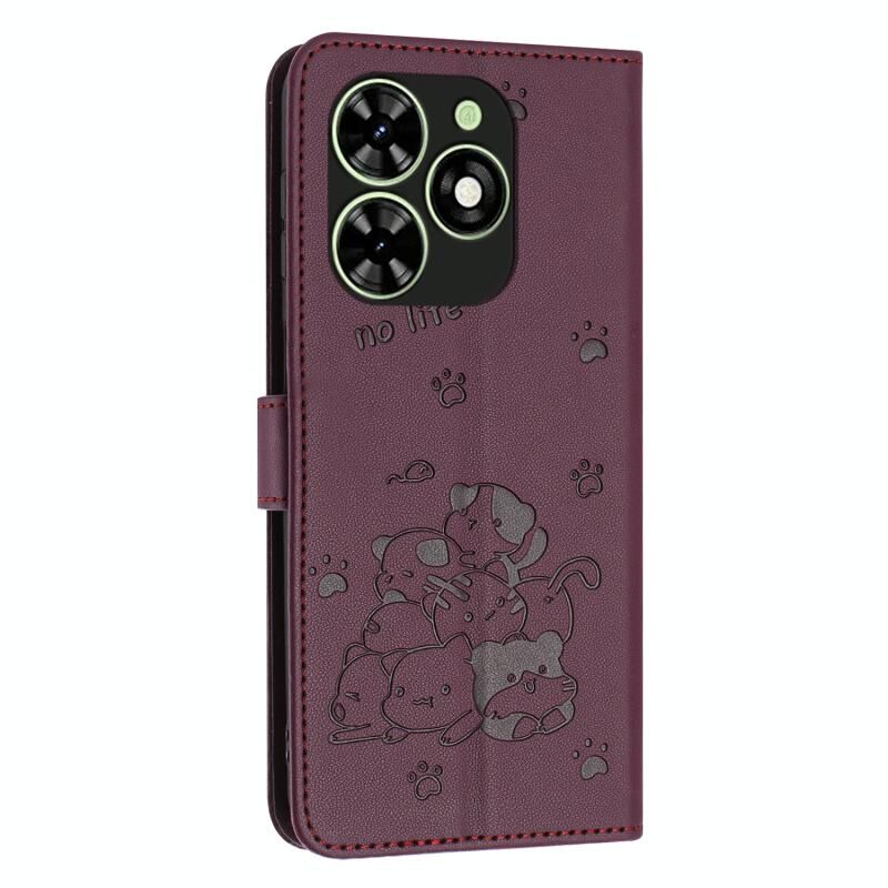 Θήκη δερμάτινη για Tecno Spark Go 2024 4G με ανάγλυφο σχέδιο γατάκι και κορδόνι (Μωβ)