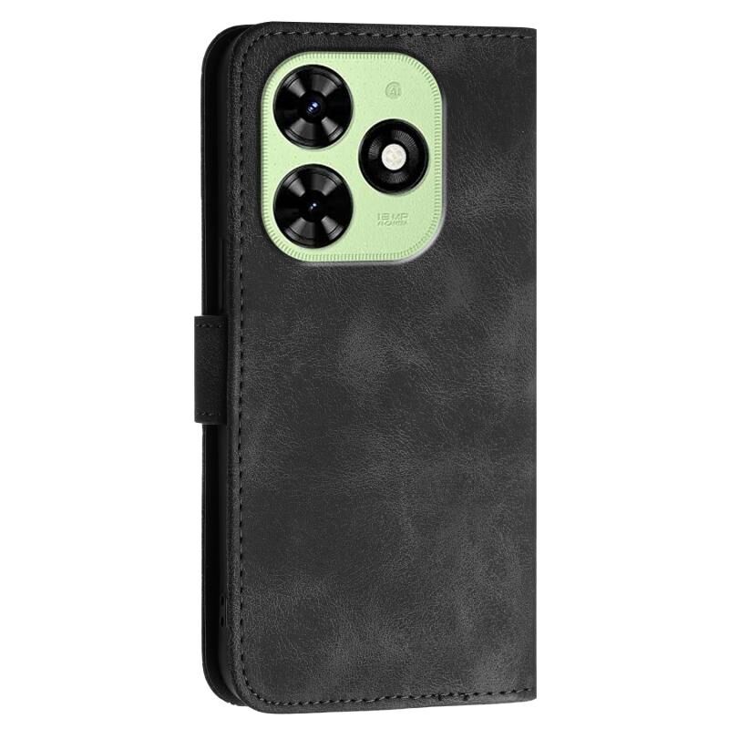 For Tecno Spark Go 2024 4G Grid Butterfly Embossed Pattern Leather Phone Case with Lanyard(Black)