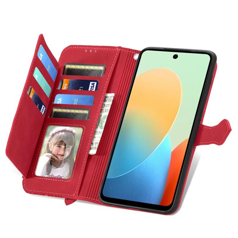 Για Tecno Spark Go 2024 Ανάγλυφο λουλούδι φερμουάρ δερμάτινη θήκη τηλεφώνου (κόκκινο)
