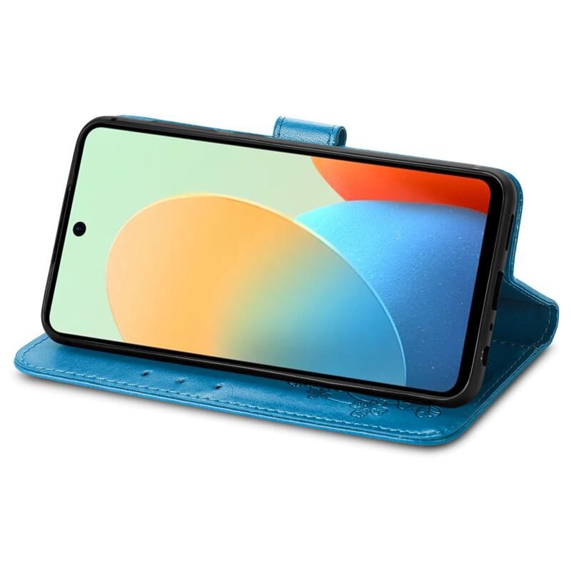 Για Tecno Spark Go 2024 τετράφυλλο κούμπωμα ανάγλυφη αγκράφα δερμάτινη θήκη τηλεφώνου (μπλε)