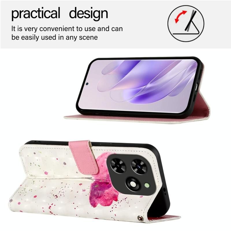 Θήκη τηλεφώνου από δέρμα με οριζόντιο άνοιγμα και τρισδιάστατη βαφή για Tecno Spark Go 2024 / Spark 20C (Λουλούδι)
