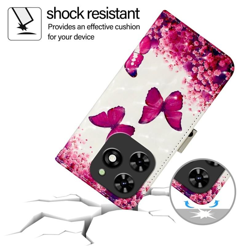 Θήκη τηλεφώνου από δέρμα με οριζόντιο άνοιγμα και τρισδιάστατη βαφή για Tecno Spark Go 2024 / Spark 20C (Ροζ Πεταλούδα)