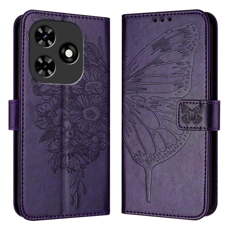 Θήκη τηλεφώνου από δέρμα με ανάγλυφο σχέδιο πεταλούδας για Tecno Spark Go 2024 / Spark 20C (Μαύρο)