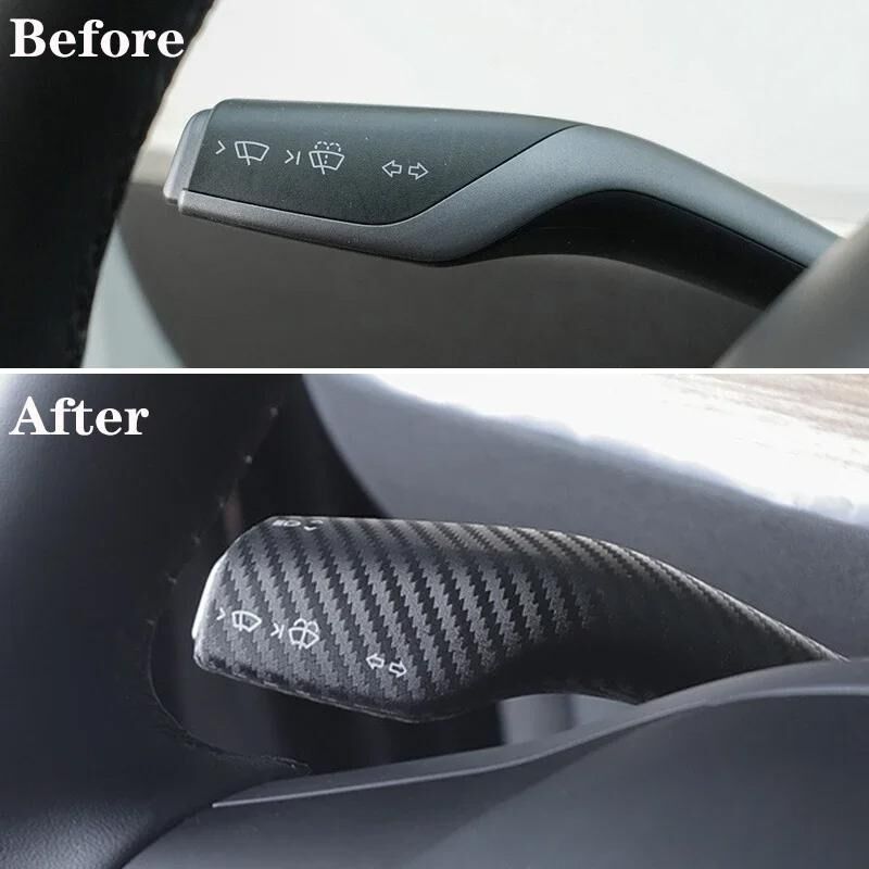 Για Tesla Model 3 / Y 2τεμ/σετ Κάλυμμα Προστασίας Μοχλού Φλας Αυτοκινήτου με μοτίβο ανθρακονήματος (Μαύρο Γυαλιστερό)