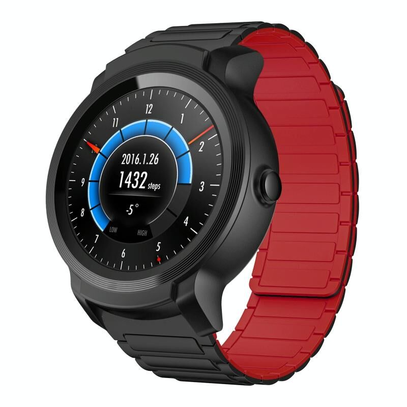 Για Ticwatch E2 22mm I-shaped μαγνητικό λουράκι σιλικόνης (μαύρο+κόκκινο)