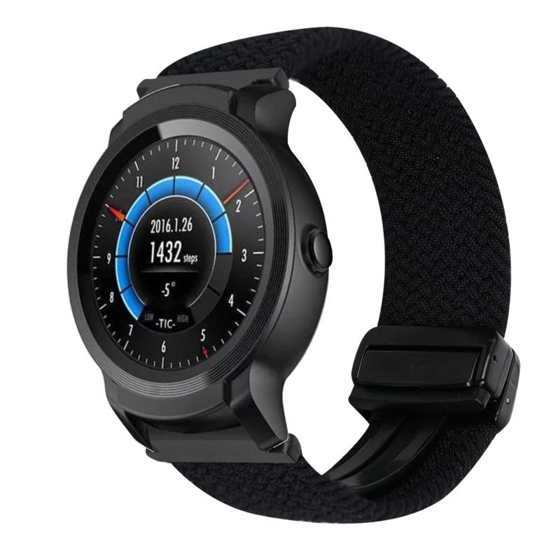 For Ticwatch E2 22mm Magnetic Buckle Braided Watch Band(Black)