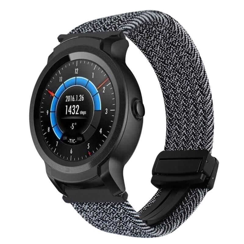 For Ticwatch E2 22mm Magnetic Buckle Braided Watch Band(Black White)