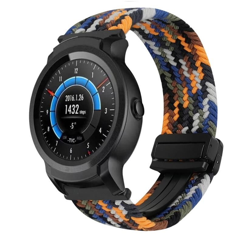 For Ticwatch E2 22mm Magnetic Buckle Braided Watch Band(Denim Orange)