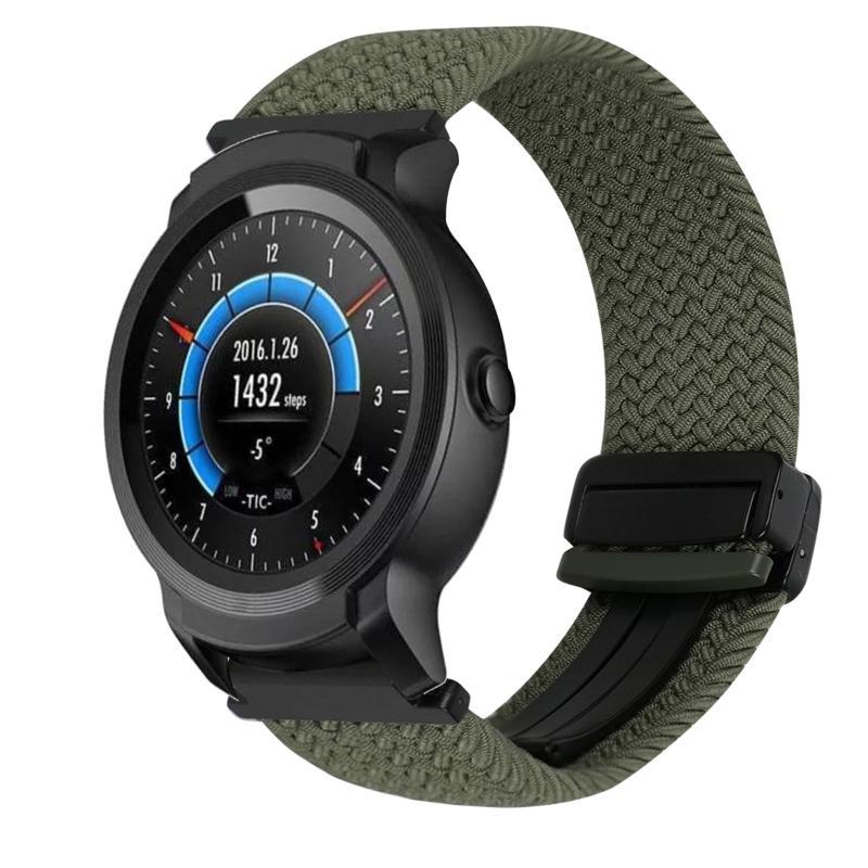 For Ticwatch E2 22mm Magnetic Buckle Braided Watch Band(Olive Green)