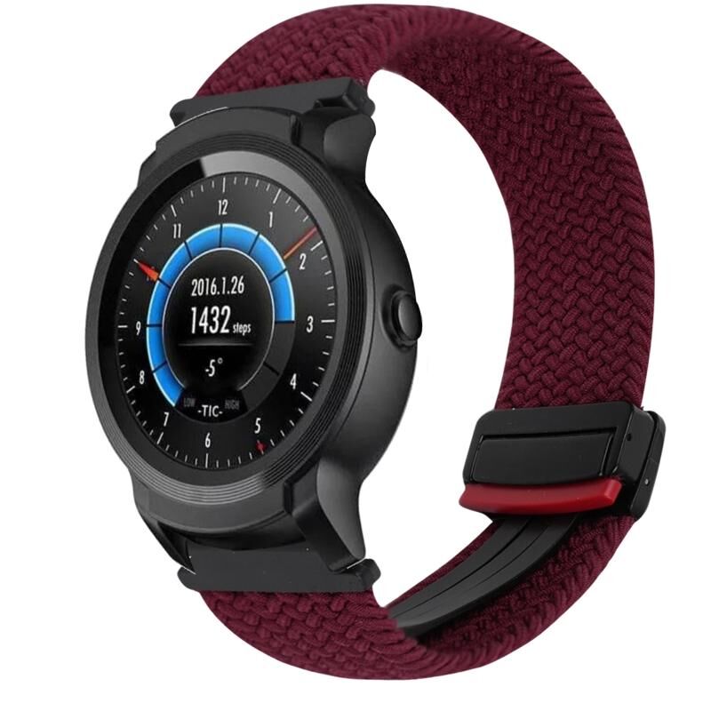 For Ticwatch E2 22mm Magnetic Buckle Braided Watch Band(Wine Red)