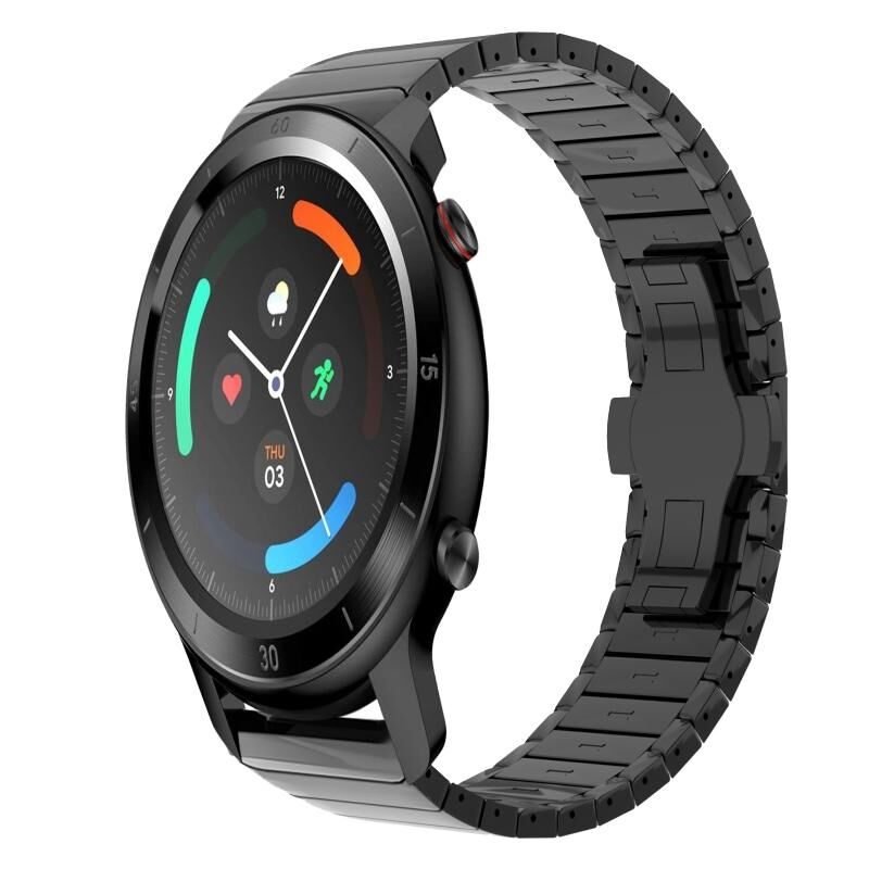 Για το Ticwatch GTX 22mm Μία χάντρα βαφής πεταλούδα πόρπη κράμα ρολόι μπάντα (μαύρο)