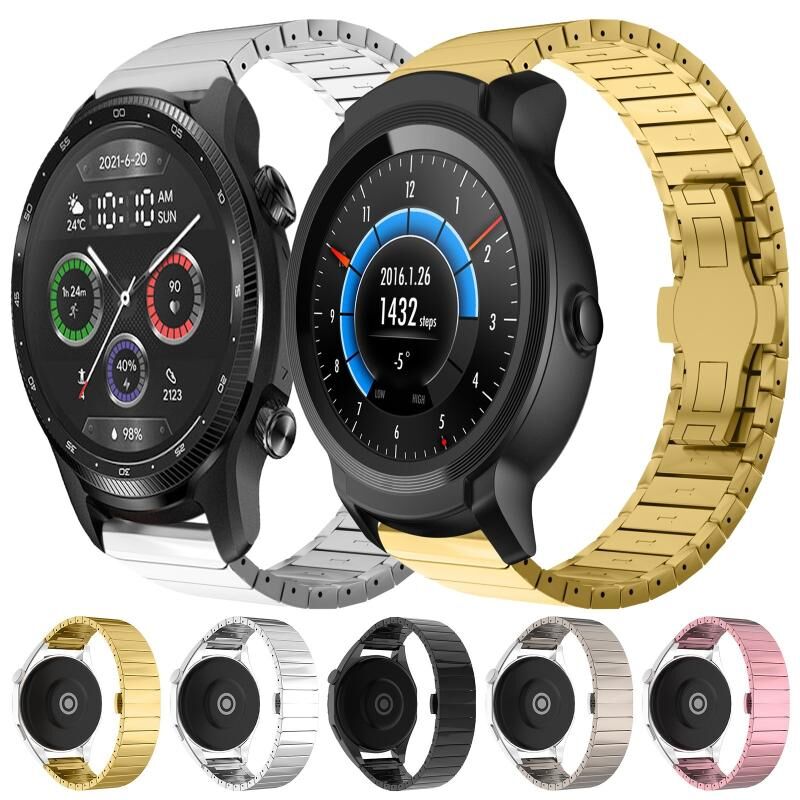 Για το Ticwatch GTX 22mm Μία χάντρα βαφής πεταλούδα πόρπη κράμα ρολόι μπάντα (χρυσό)