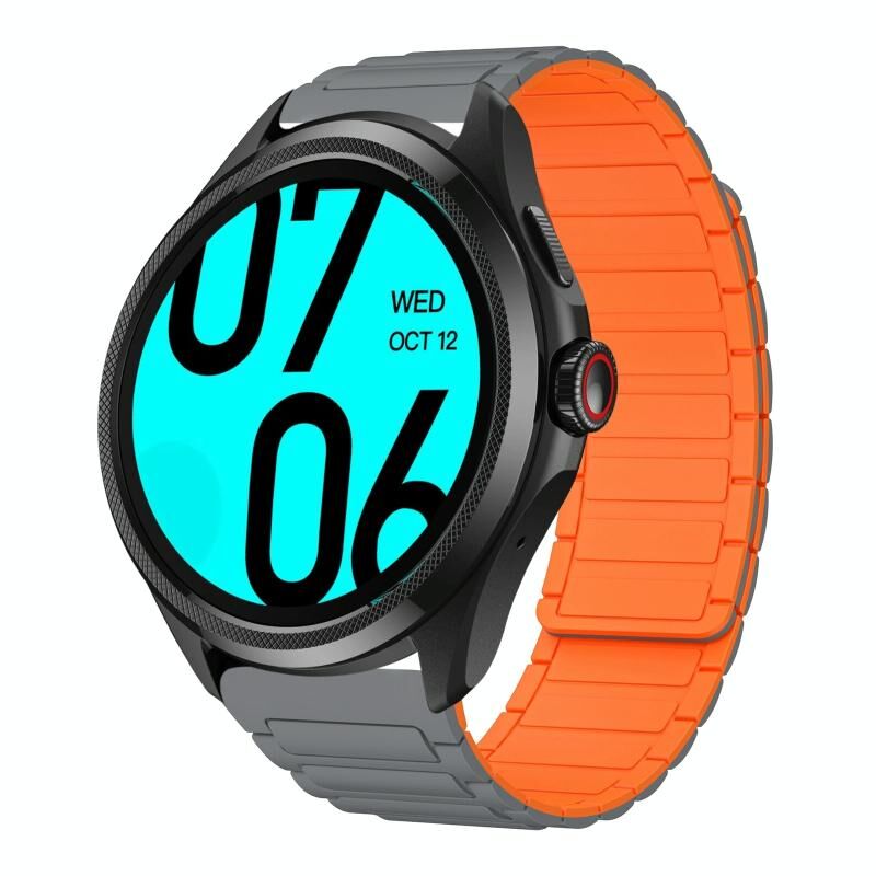 Για Ticwatch Pro 2021 22mm I-shaped μαγνητική ζώνη ρολογιού σιλικόνης (γκρι+πορτοκαλί)