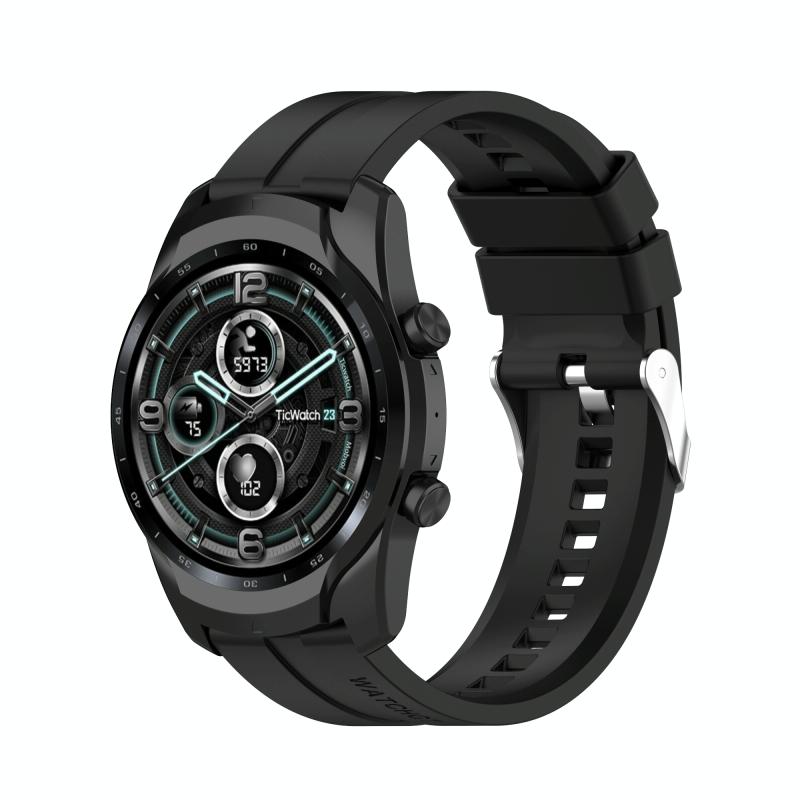 Για λουράκι ρολογιού TicWatch Pro 3 από σιλικόνη με ασημένια αγκράφα από ατσάλι (Μπλε της νύχτας)