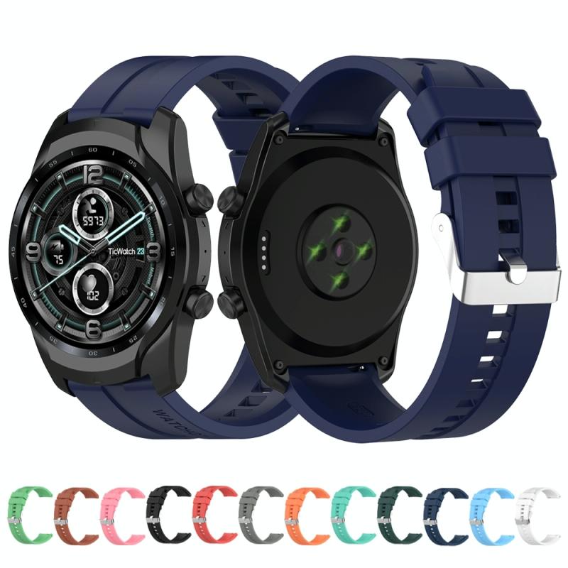 Για λουράκι ρολογιού TicWatch Pro 3 από σιλικόνη με ασημένια αγκράφα από ατσάλι (Μπλε της νύχτας)