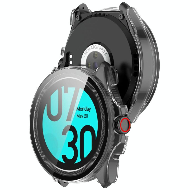 For Ticwatch Pro 5 Enduro Tempered Film Integrated PC Watch Protective Case(Transparent Color)