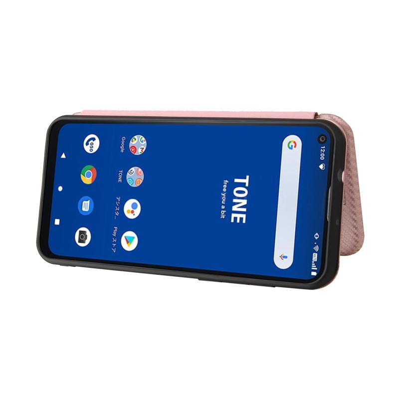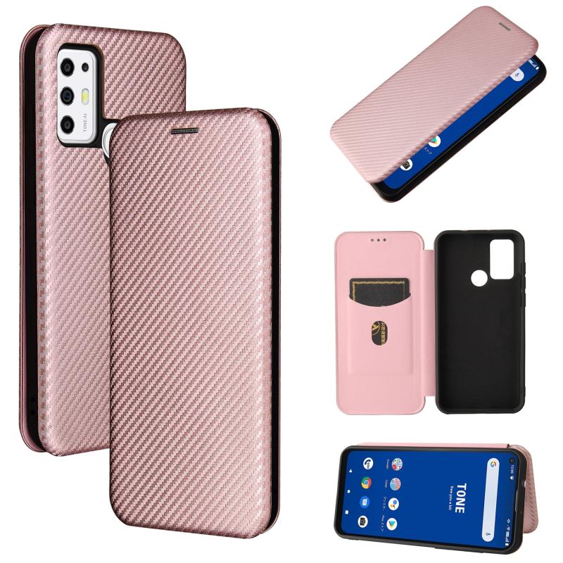 For Tone e21 Carbon Fiber Texture Horizontal Flip TPU + PC + PU Leather Case with Card Slot(Pink)