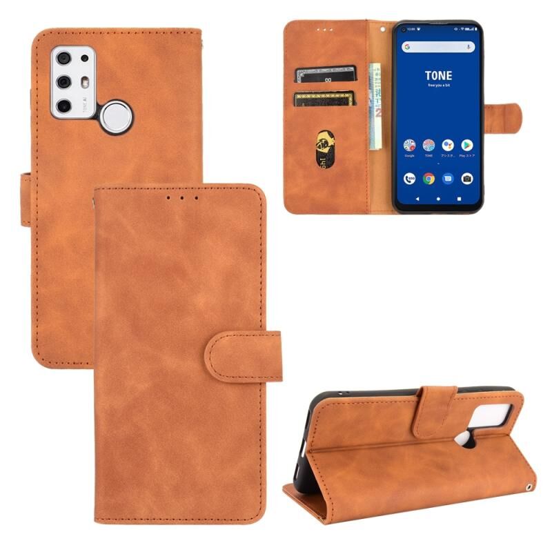 Για Tone e21 Αμιγές χρώμα δέρμα αίσθηση μαγνητική πόρπη οριζόντια Flip μοσχάρι υφή PU δέρμα υπόθεση με κάτοχο & υποδοχές καρτών & πορτοφόλι (καφέ)