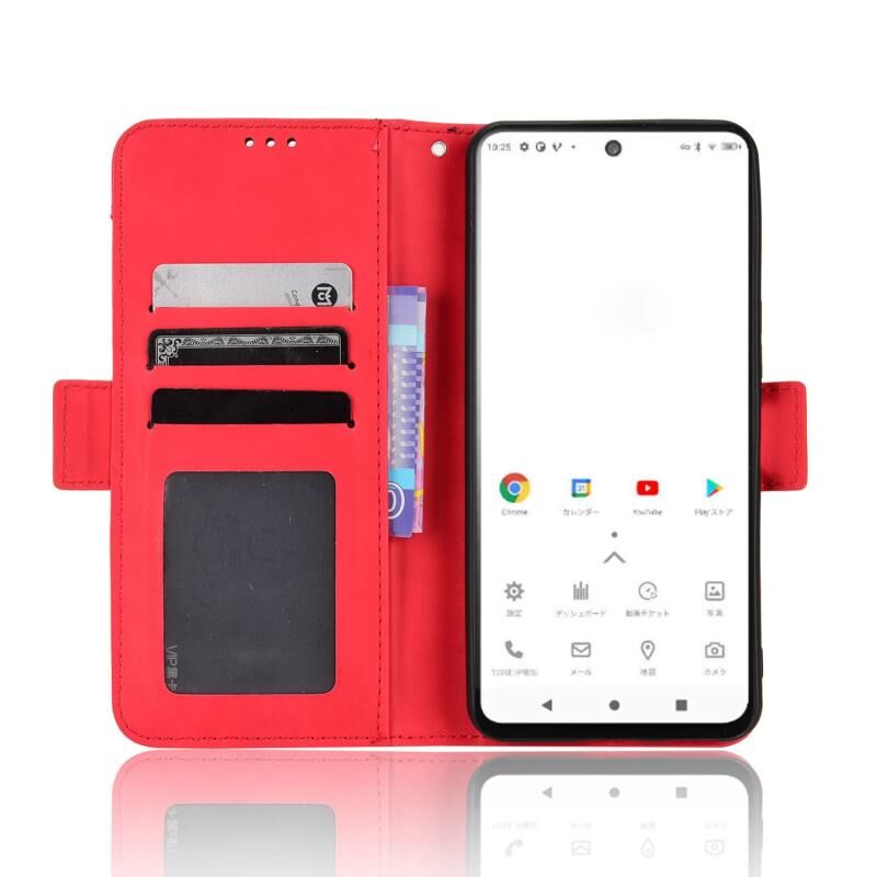 Για TONE E22 δέρμα αίσθηση μοσχάρι υφή κάρτα υποδοχές δερμάτινη θήκη τηλεφώνου (κόκκινο)