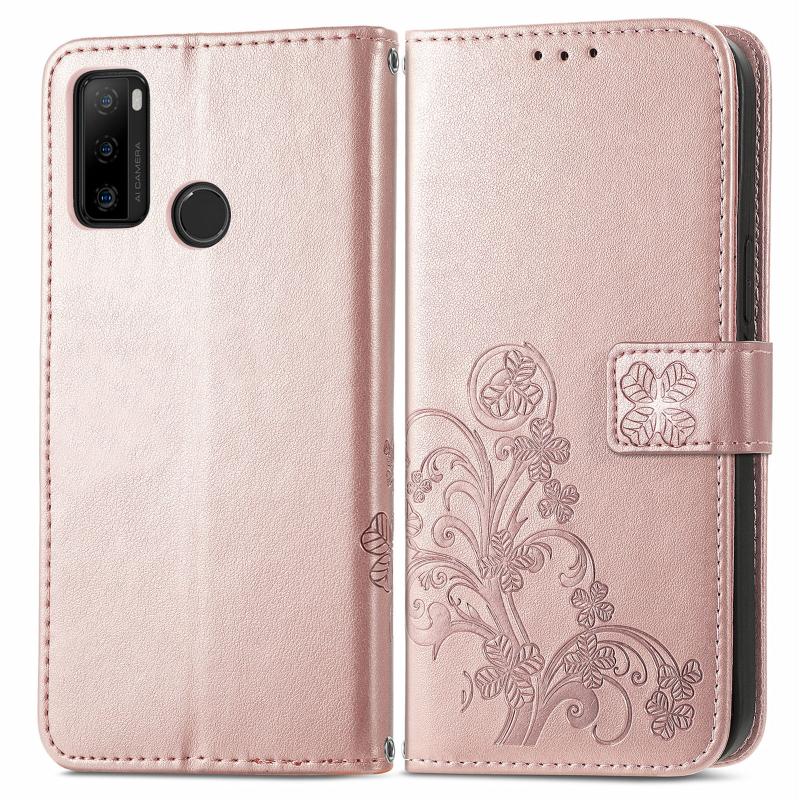 For Ulefone Note 10 Four-leaf Clasp Embossed Buckle Mobile Phone Protection Leather Case with Lanyard & Card Slot & Wallet & Bracket Function(Rose Gold)