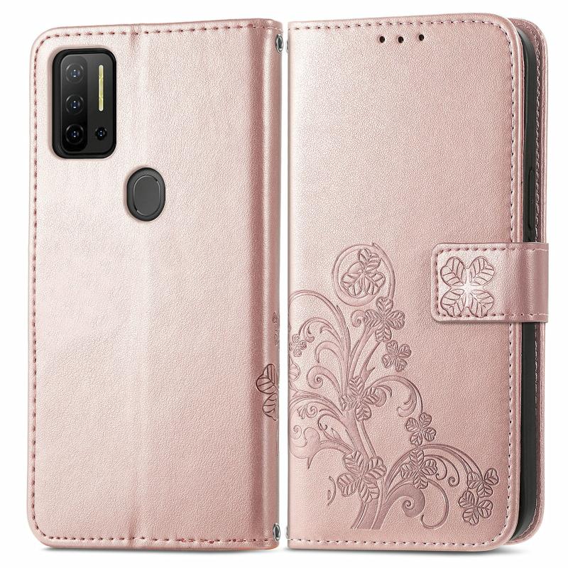 For Ulefone Note 11 Plus Four-leaf Clasp Embossed Buckle Mobile Phone Protection Leather Case with Lanyard & Card Slot & Wallet & Bracket Function(Rose Gold)