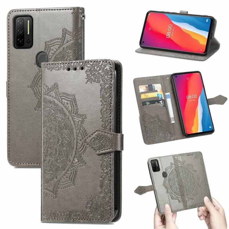 Για Ulefone Note 11 Plus Mandala λουλούδι ανάγλυφο οριζόντια Flip δερμάτινη θήκη με στήριγμα / υποδοχή κάρτας / πορτοφόλι / κορδόνι (Γκρι)