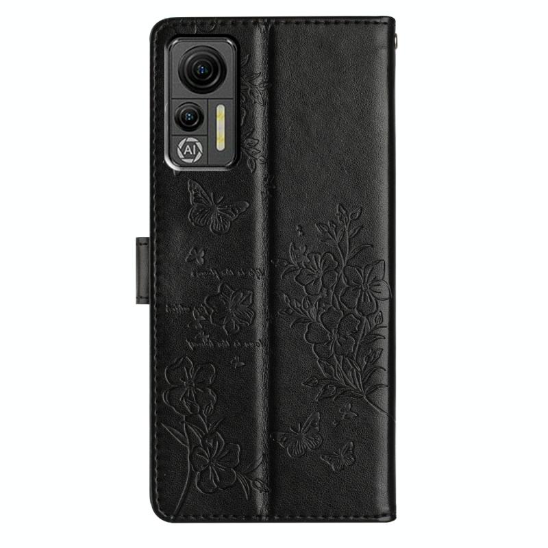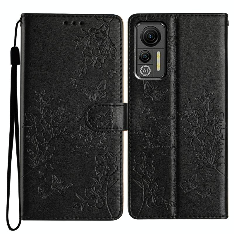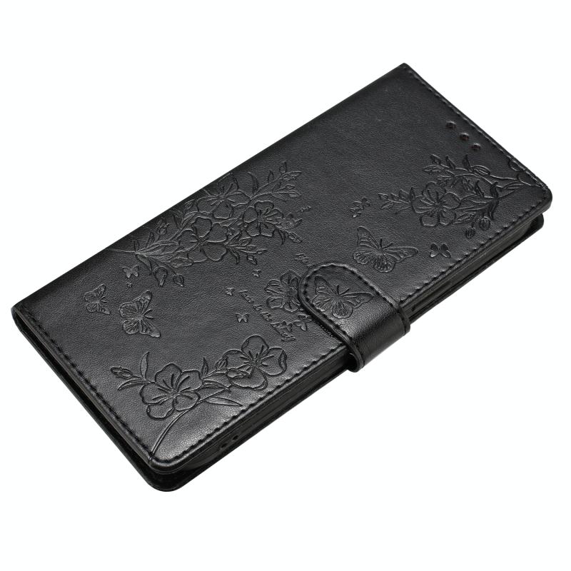 Για Ulefone Note 14 Δερμάτινη Θήκη με Πεταλούδες και Λουλούδια (Μαύρο)
