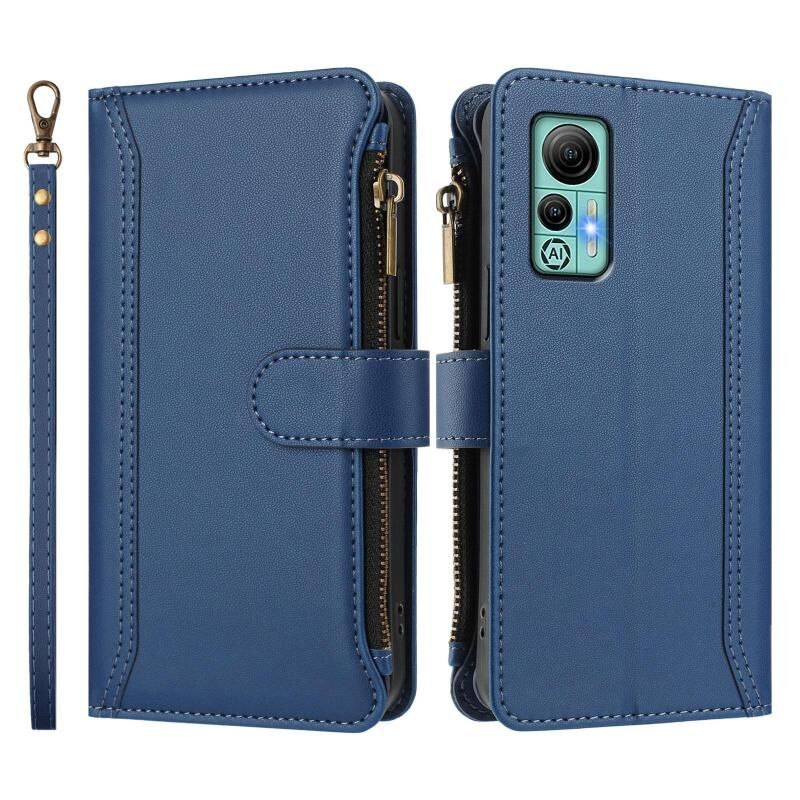 Για Ulefone Note 14 Μαγνητικό Κλείσιμο 9 Θήκες Κάρτας Δερμάτινη Θήκη με Φερμουάρ και Λουρί Χεριού (Σκούρο Μπλε)