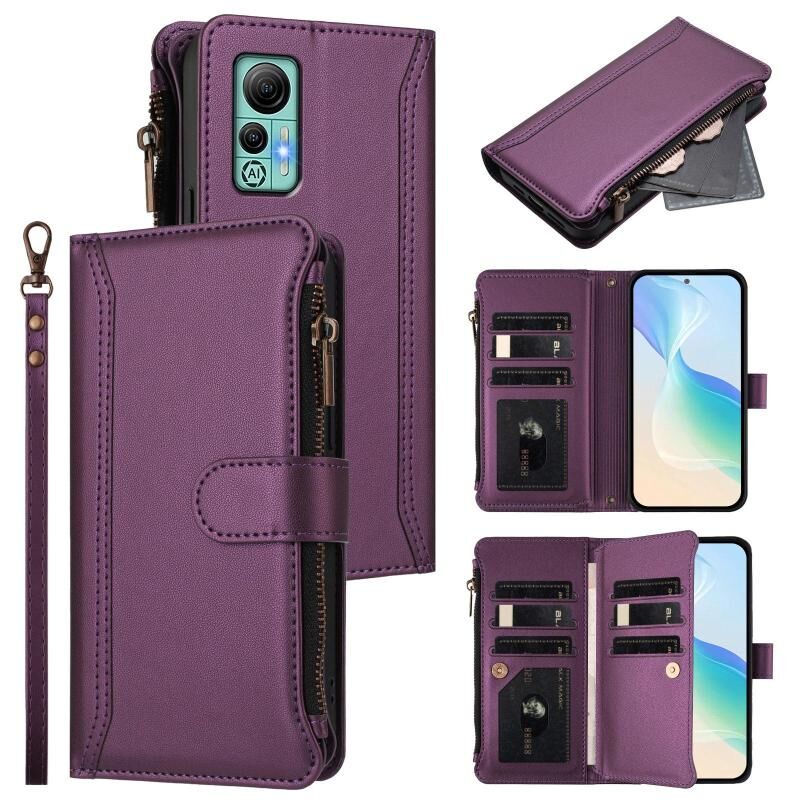 Για Ulefone Note 14 Μαγνητικό Κλείσιμο 9 Θήκες Κάρτας Δερμάτινη Θήκη με Φερμουάρ και Λουρί Χεριού (Σκούρο Μπλε)