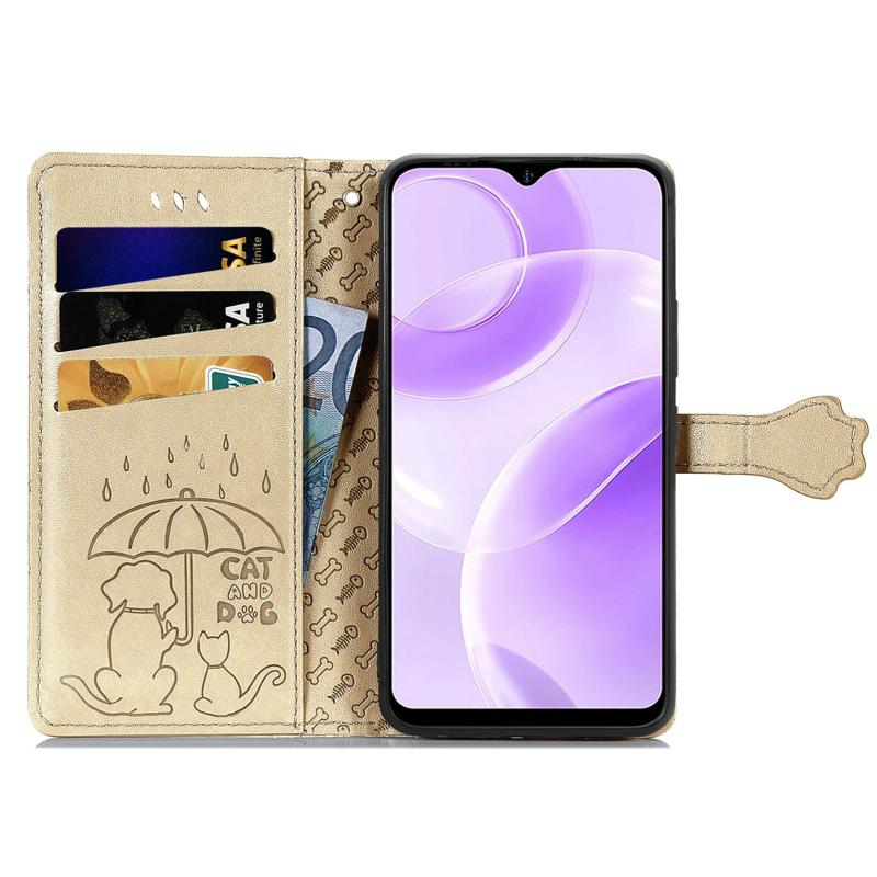 Θήκη τηλεφώνου Ulefone Note 15 με ανάγλυφο σχέδιο γάτας και σκύλου από δέρμα (Χρυσό)