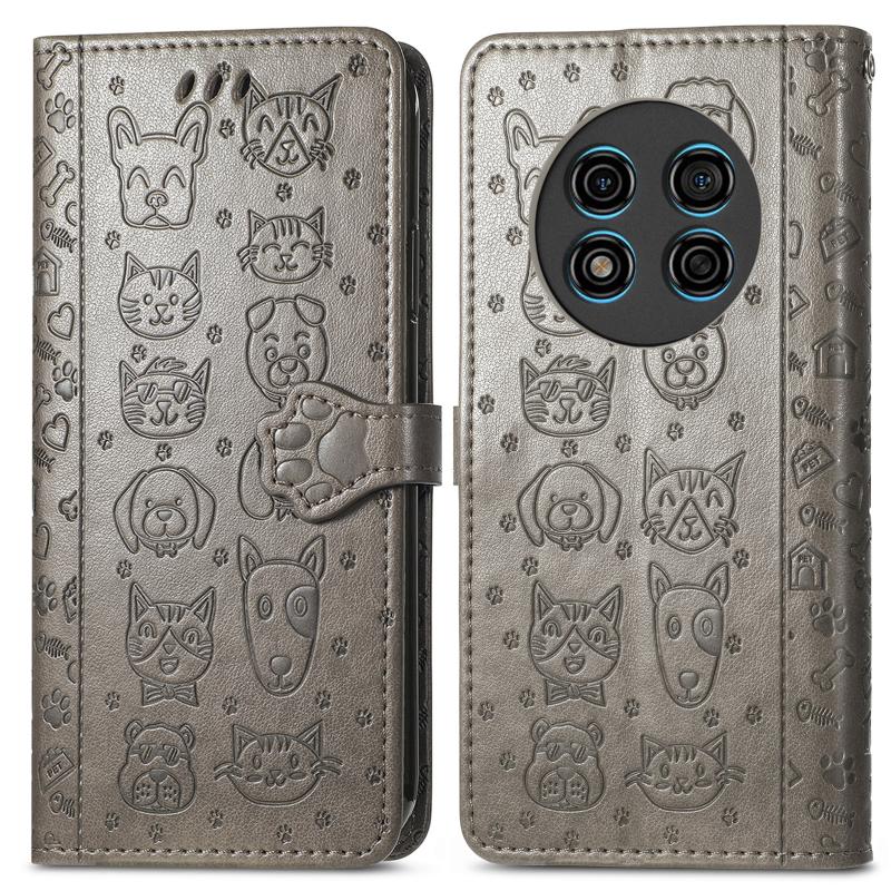 Θήκη τηλεφώνου Ulefone Note 15 με ανάγλυφο σχέδιο γάτας και σκύλου από δέρμα (Χρυσό)