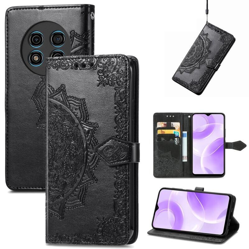 Για Ulefone Σημείωση 15 Mandala λουλούδι ανάγλυφο δέρμα τηλέφωνο υπόθεση (μαύρο)