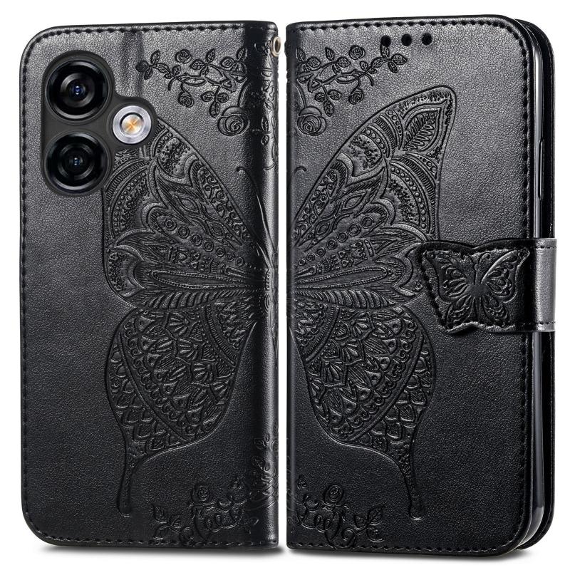 For Ulefone Note 16 Pro Butterfly Love Flower Embossed Leather Phone Case(Black)