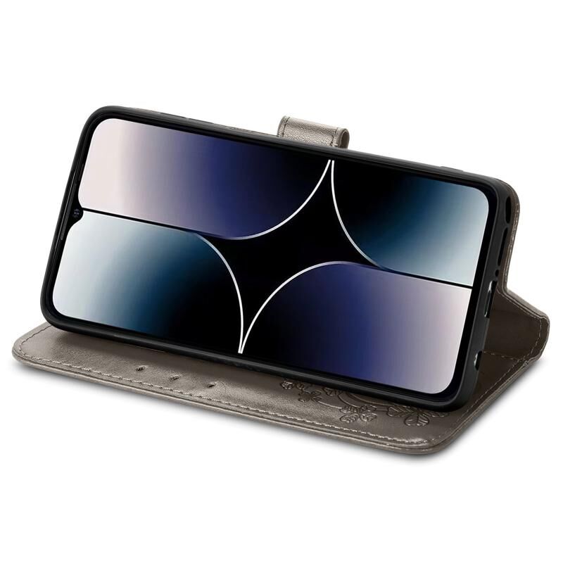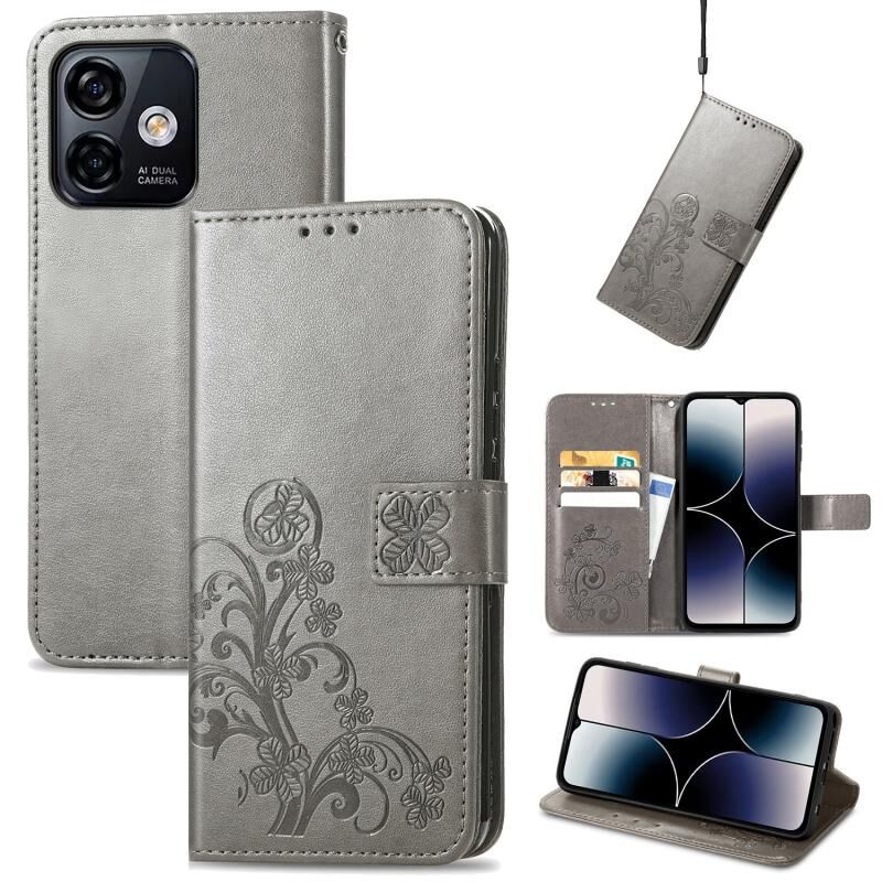 Για το Ulefone Note 16 Pro Four-leaf Clasp ανάγλυφη αγκράφα δερμάτινη θήκη τηλεφώνου (γκρι)