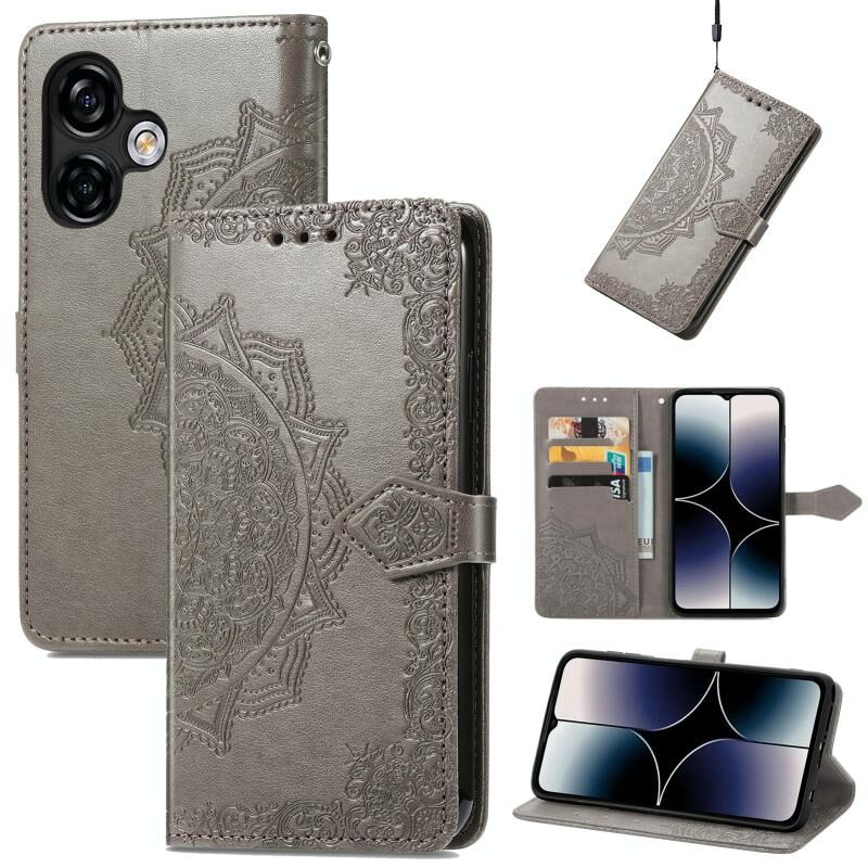 Για Ulefone Note 16 Pro Mandala λουλούδι ανάγλυφη δερμάτινη θήκη τηλεφώνου (γκρι)